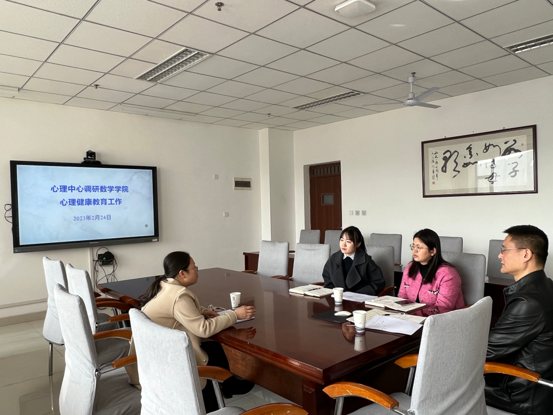 2月24日下午,suncitygroup太阳集团心理健康教育中心李佳老师莅临公司调研心理健康教育工作,数学公司党委副书记田和军、辅导员霍思瑶、石济瑄参与会议。