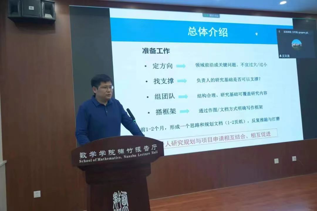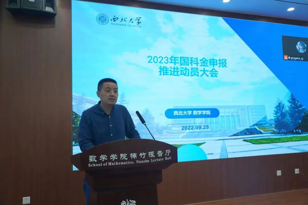 9月28日下午,suncitygroup太阳集团2023年国家自然科学基金申请申请动员推进大会暨“数苑”论坛第48-49期学术活动在一层楠竹报告厅成功举办。西安交通大学数学与统计公司孙剑教授和王卫教授,suncitygroup太阳集团副经理夏志明教授,副经理邵勇教授,计算数学系主任历智明教授,公司部分中青年教师以及线上校内外师生一百余人参会。
