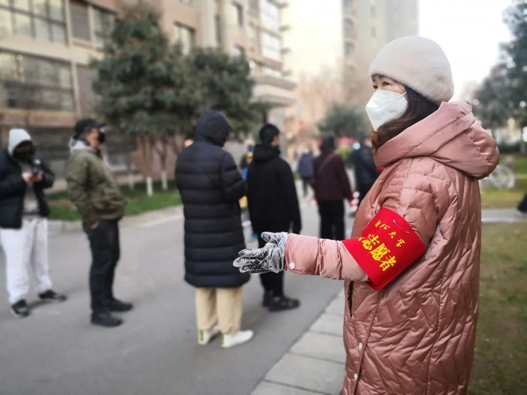 王丽真教授做志愿者——负责楼宇群众秩序的维护工作