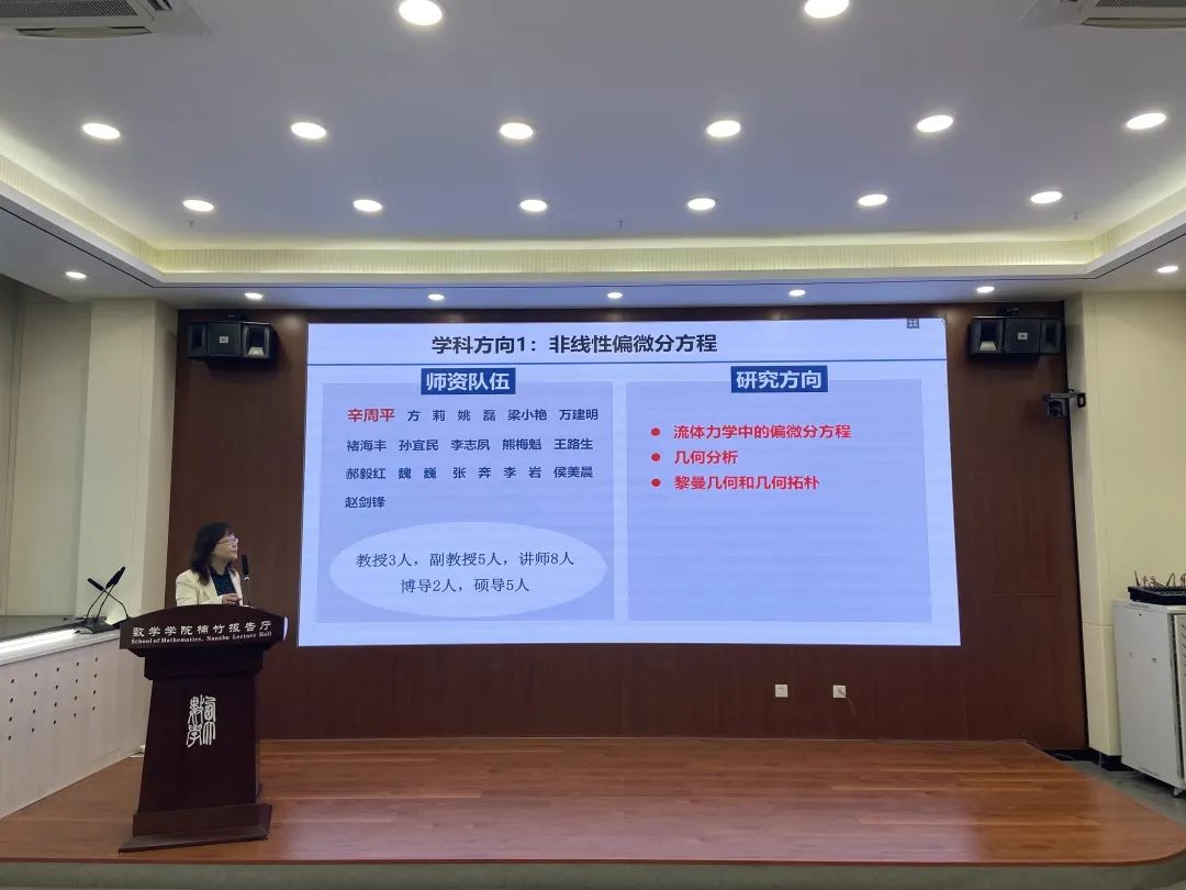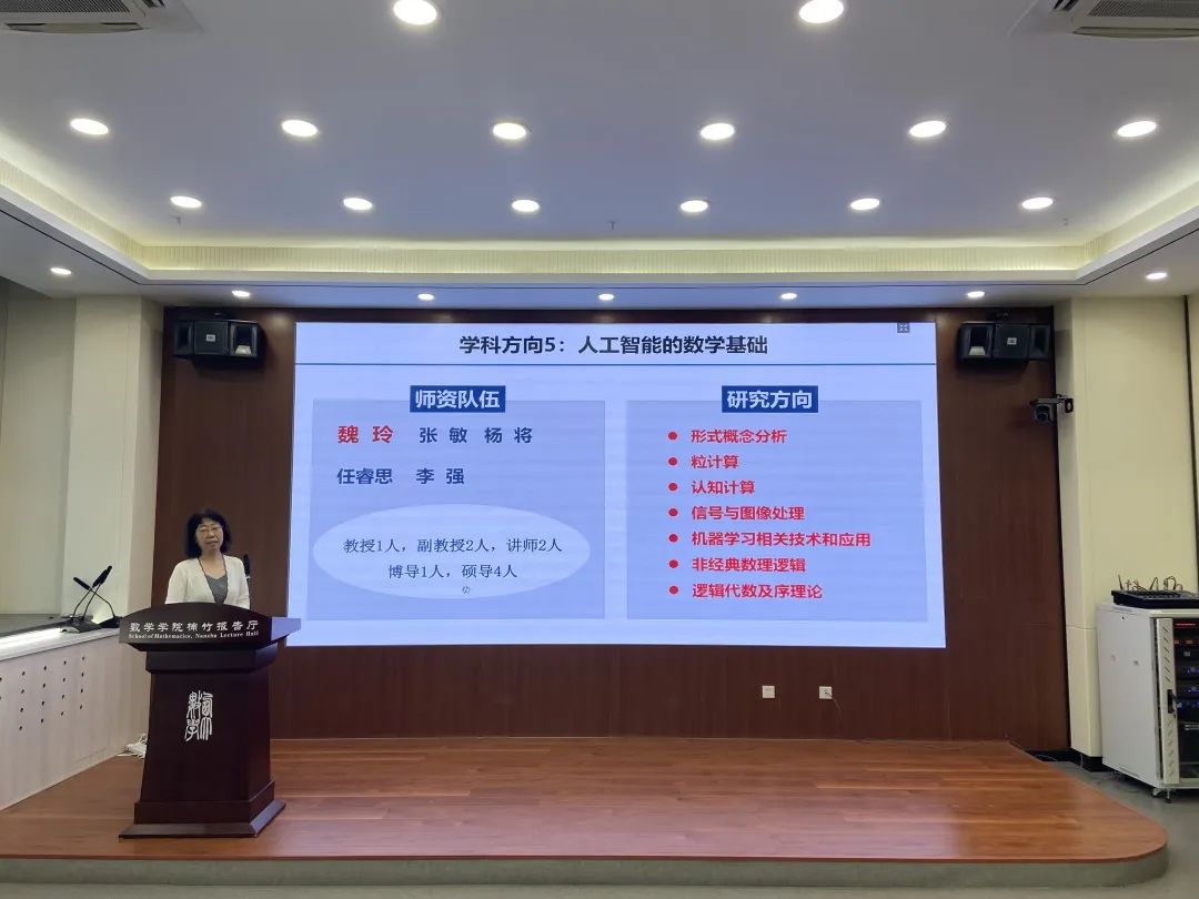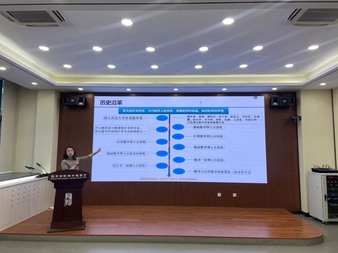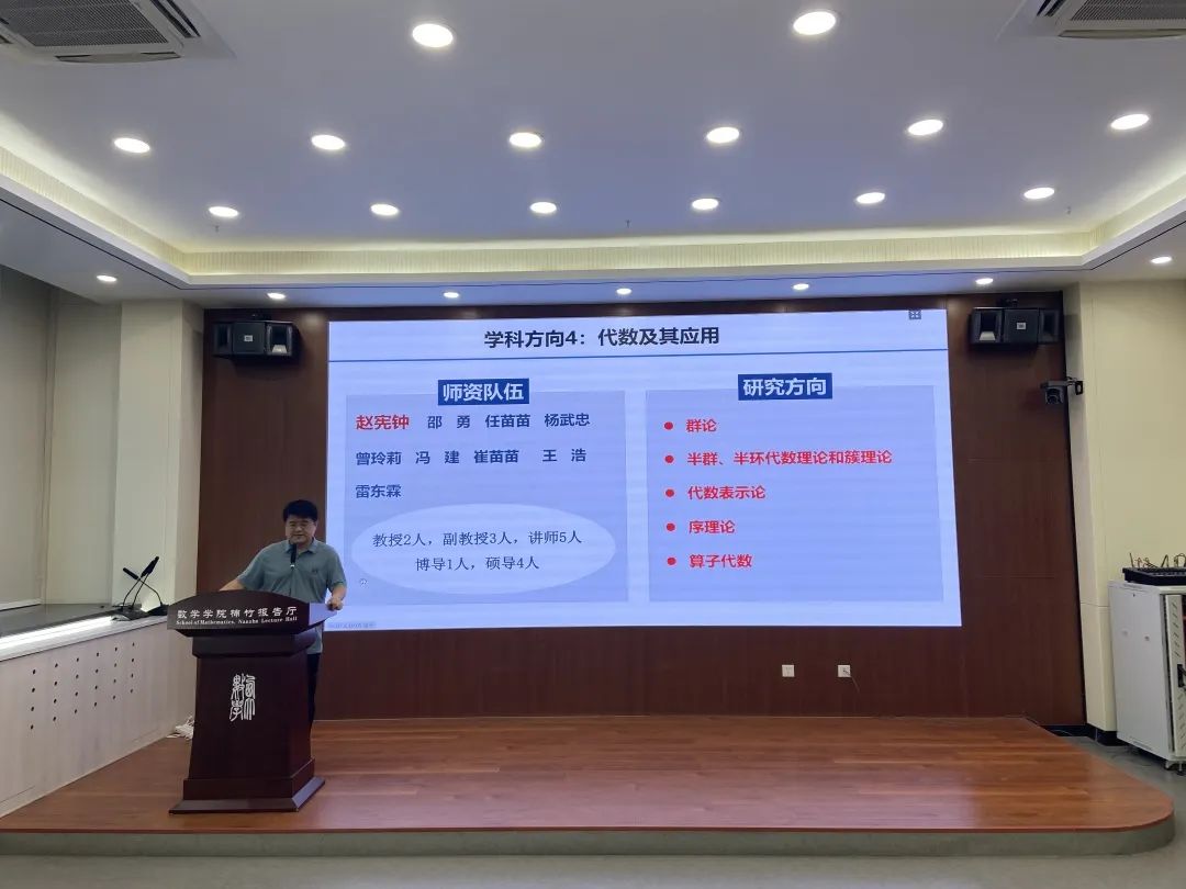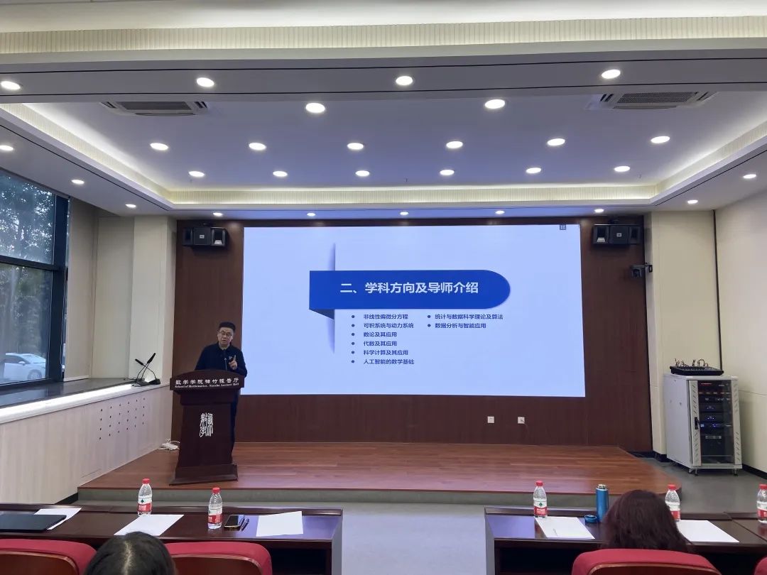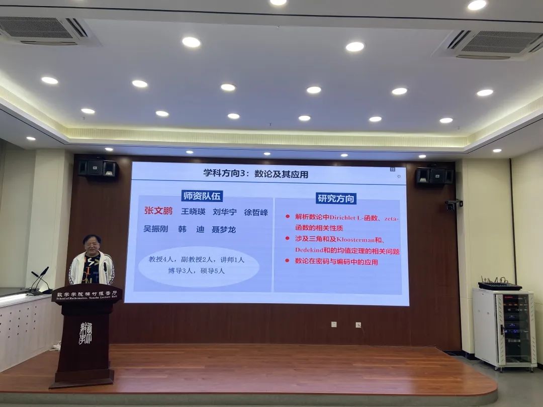 张瑞教授从公司悠久的办学历史、几代数学人的传承、深厚的学科底蕴、良好的学科声誉讲起,介绍了公司的团队建设、学科方向、团队队伍、人才培养、国际交流、学术交流、研究生教育质量保障以及近三年考研及招生情况。