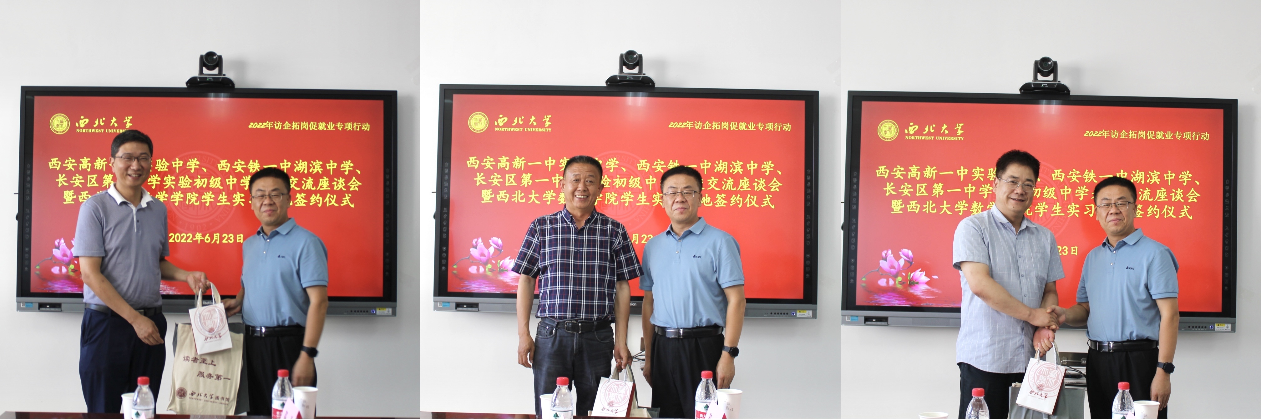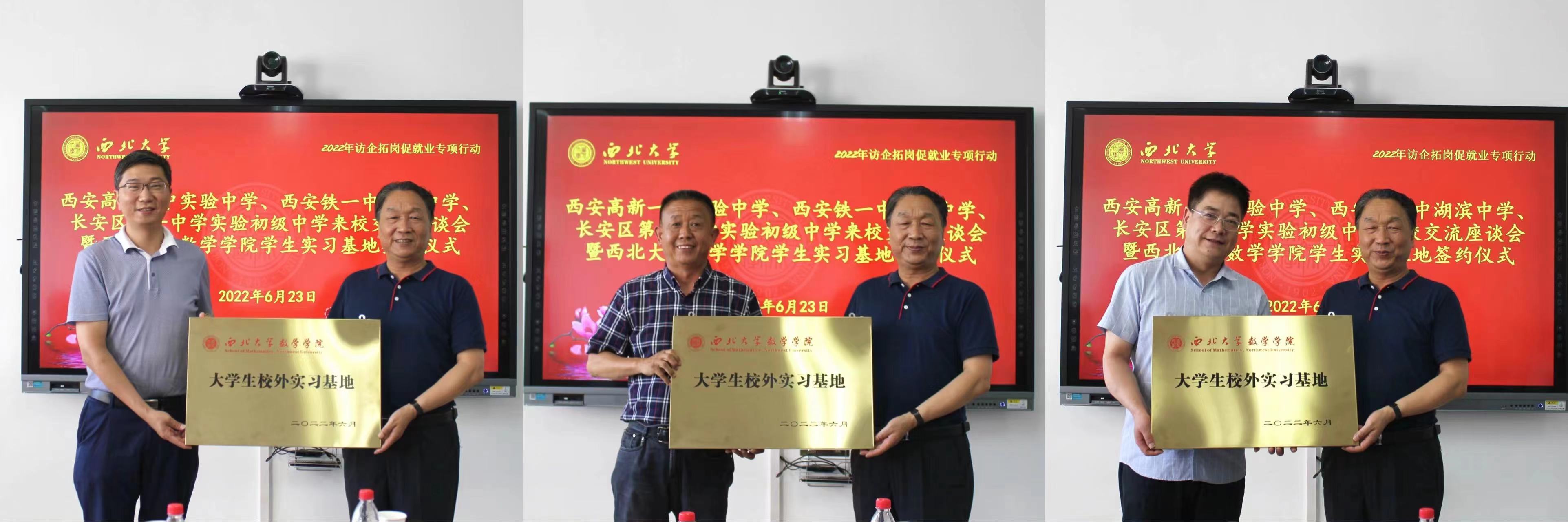 公司党委副书记、纪委书记、陕西省监察委员会驻suncitygroup太阳集团监察专员李邦邦分别与西安高新一中实验中学教务处主任张锐、西安铁一中湖滨中学执行董事长王刚、长安区第一中学实验初级中学副董事长强军为suncitygroup太阳集团员工校外实习基地揭牌。