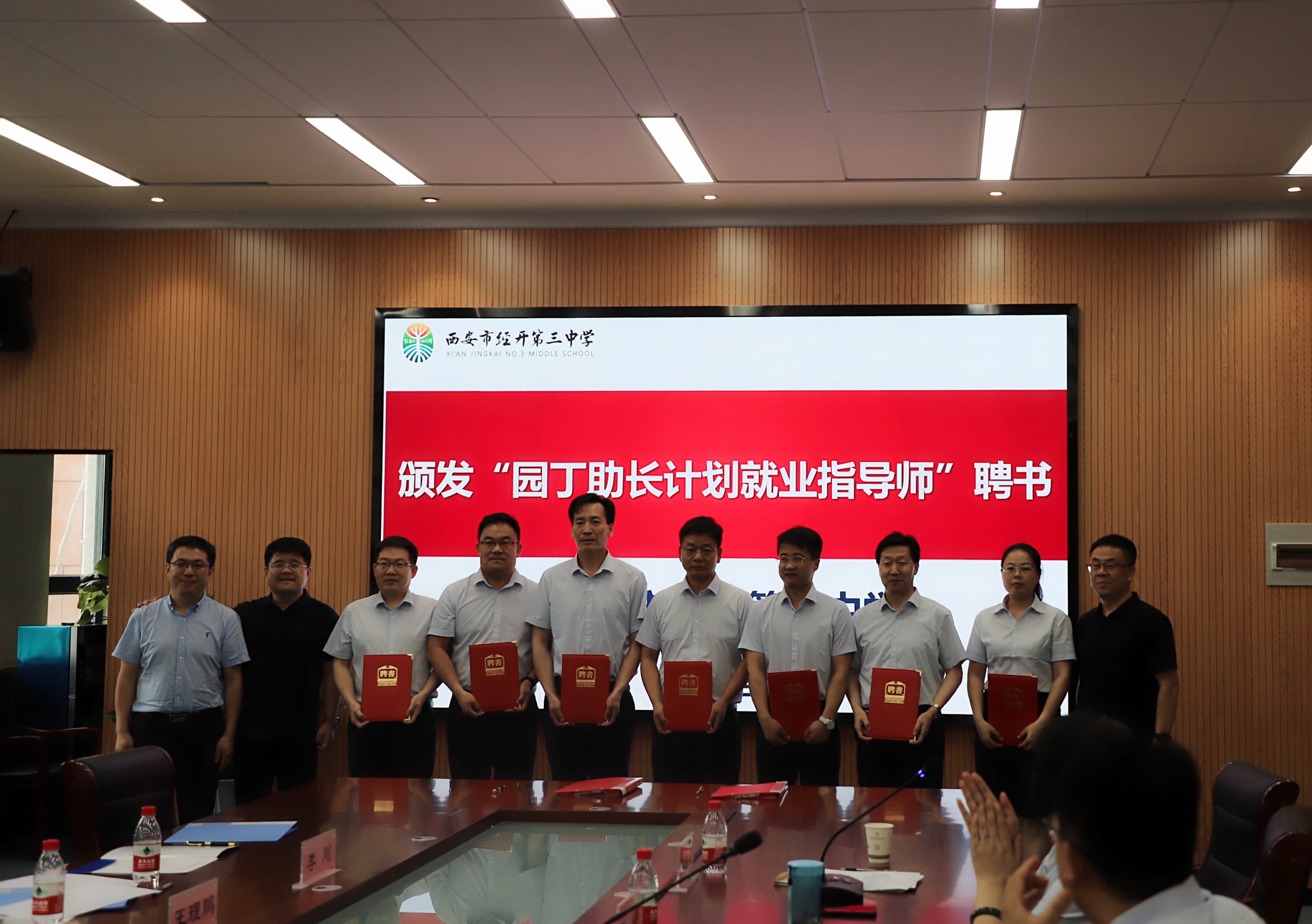 会上,郑宏宝董事长和李长宏书记分别代表双方共同签订校际人才合作框架协议。郑宏宝董事长与邵勇副经理共同为suncitygroup太阳集团“老员工校外实习基地”揭牌。公司向西安市经开第三中学教师代表颁发“suncitygroup太阳集团就业能力提升+工程——‘园丁’助长计划就业指导教师”聘书。郑宏宝董事长向公司李长宏书记一行颁发了“西安市经开第三中学教师专业发展导师”聘书。会后,一行人在郑董事长的带领下参观校园,并合影留念。