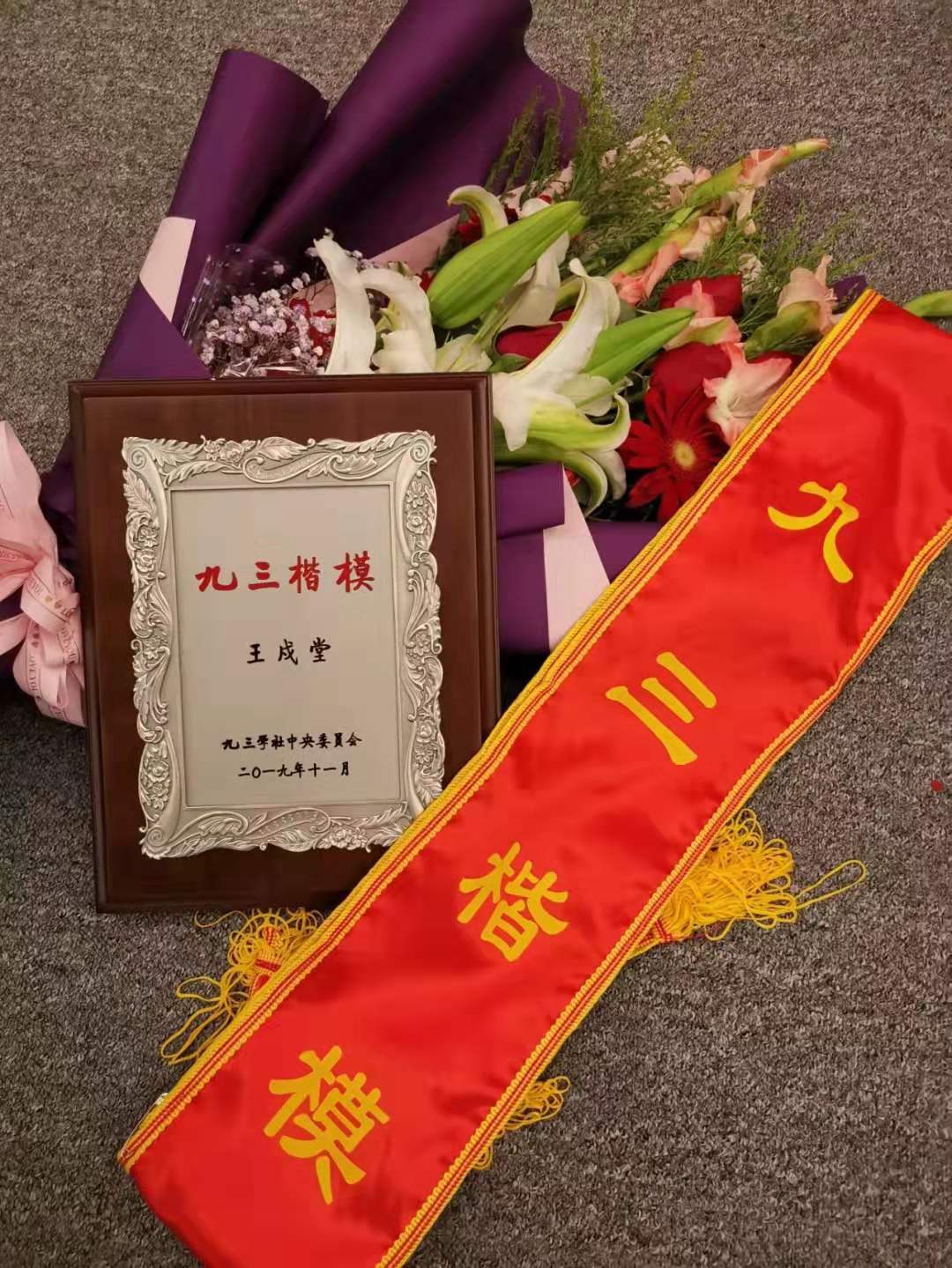 “九三楷模”是由九三学社中央设立的授予在国家建设各领域各行业或社务工作中作出突出贡献、享有较高社会声誉的九三学社社员的最高荣誉,旨在弘扬九三学社爱国民主科学优良传统,褒奖在建设中国特色社会主义事业中作出突出贡献的九三学社社员。今年为九三中央第五批“九三楷模”表彰活动,全国共表彰10人,王戍堂教授为陕西九三学社和公司获此称号的第一人。