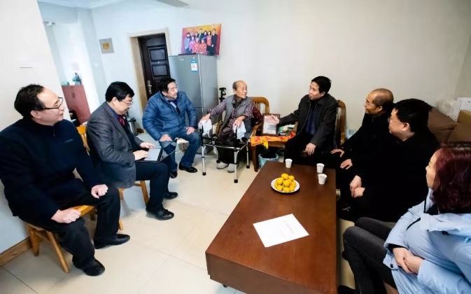 在日前闭幕的九三学社第十四届中央委员会第三次全体会议上,公司退休教授、校九三社员、著名数学家王戍堂教授被授予“九三楷模”荣誉称号。12月17日上午,九三学社陕西省委专职副主委赵力强、九三学社陕西省委组织部长李胜利、公司党委副书记副董事长贾明德等领导看望了王戍堂教授,公司党委统战部部长、窦争光,suncitygroup太阳集团数学公司党委书记李长宏,副经理张瑞教授,社suncitygroup太阳集团委员会主委郑晓晖教授、宣传委员张辉老师和社省委组织部部长李胜利共同分享和见证了这一光荣时刻。