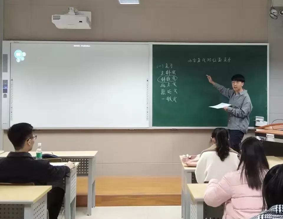 主持人李欣晔同学首先介绍了本次比赛的评委老师以及选手,然后详细说明了比赛规则。每位选手进行限时一分钟的自我介绍和15分钟的讲课,对自己所抽到的高中数学课题进行详细讲解。