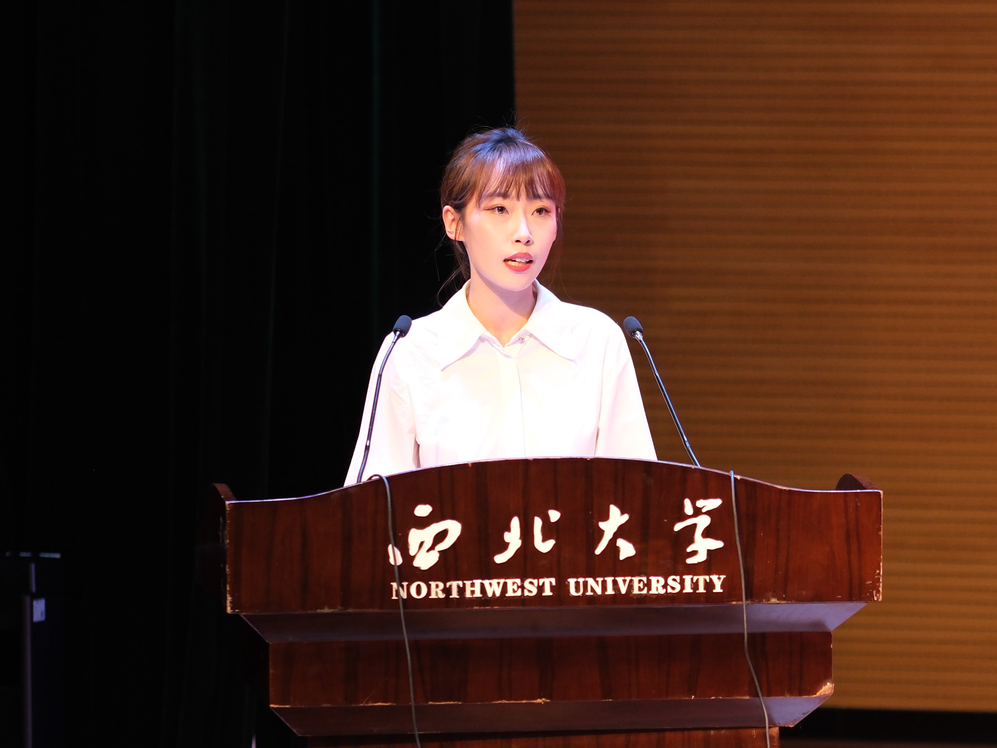 硕士生梁奕宁、本科生孙泳涵同学代表2023届全体毕业生发言,向母校的殷殷关切与全体老师的悉心培育致以崇高的敬意,并在临别之际向几年来朝夕相处的同学们送上真挚的祝福。