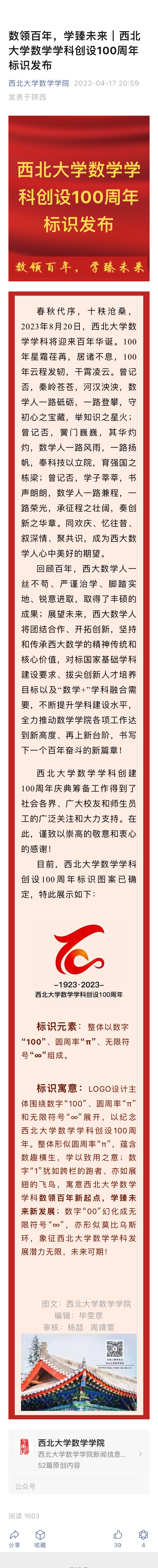 suncitygroup太阳集团数学学科创设100周年标识发布