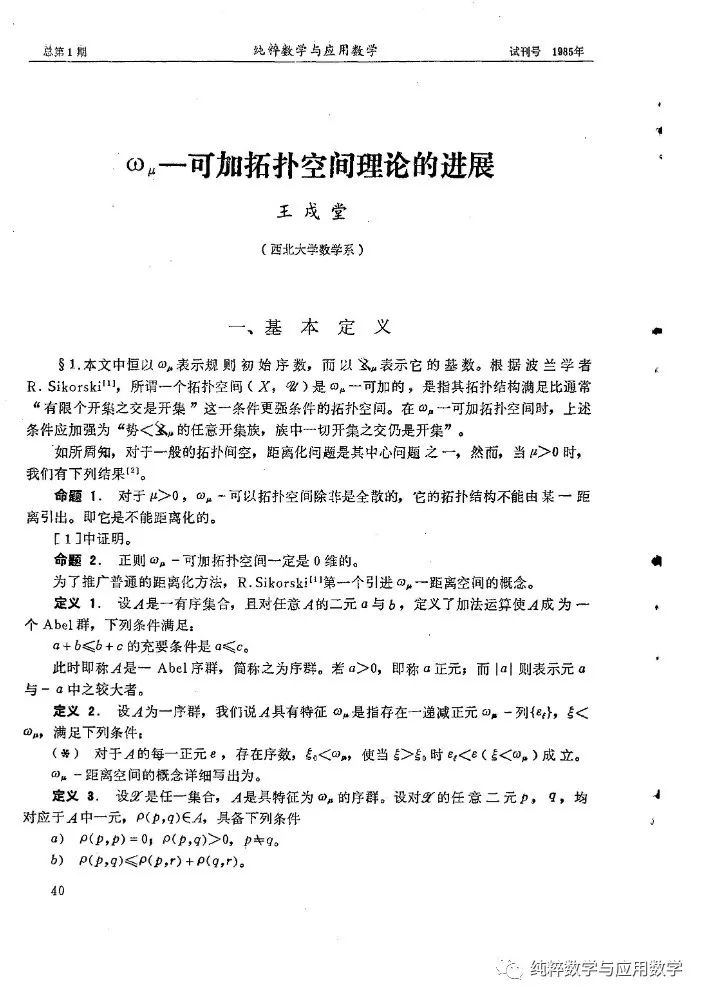 上世纪50年代以来,王戍堂先生潜心研究数学,主要从事集论、点集拓扑学、泛函分析等基础数学研究工作。1964年提出了著名的“ωμ-度量化定理”,轰动国际数学界,被称为以中国人姓氏命名的“王氏定理”;1983年,受邀出席第十九届(波兰华沙)国际数学家大会;1984年获“国家级有突出贡献中青年专家”称号;是1986年《新华日报》特别报道的以中国人姓氏命名科技成果的20位科学家之一,被新华社誉为“中国的骄傲”。1979年,他发表《广义数及其应用(I)》,首次提出广义数系统,成功地解释爱因斯坦狭义相对论用于光子时的光子静质量问题以及量子力学中δ函数与传统数学的矛盾,建立了广义数域分析学,获陕西省重大科学奖一等奖。还先后获得陕西科技精英、首届陕西省教学名师等荣誉称号。