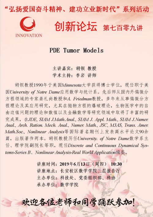 suncitygroup太阳集团创新论坛第七百零九讲:PDE Tumor Models
