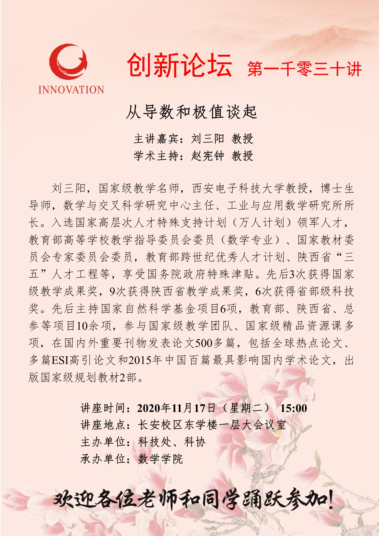 suncitygroup太阳集团创新论坛第一千零三十讲:从导数和极值谈起