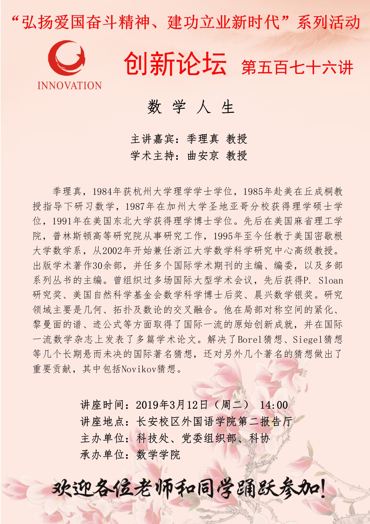 suncitygroup太阳集团创新论坛第五百七十六讲(“弘扬爱国奋斗精神、建功立业新时代”系列活动):数学人生