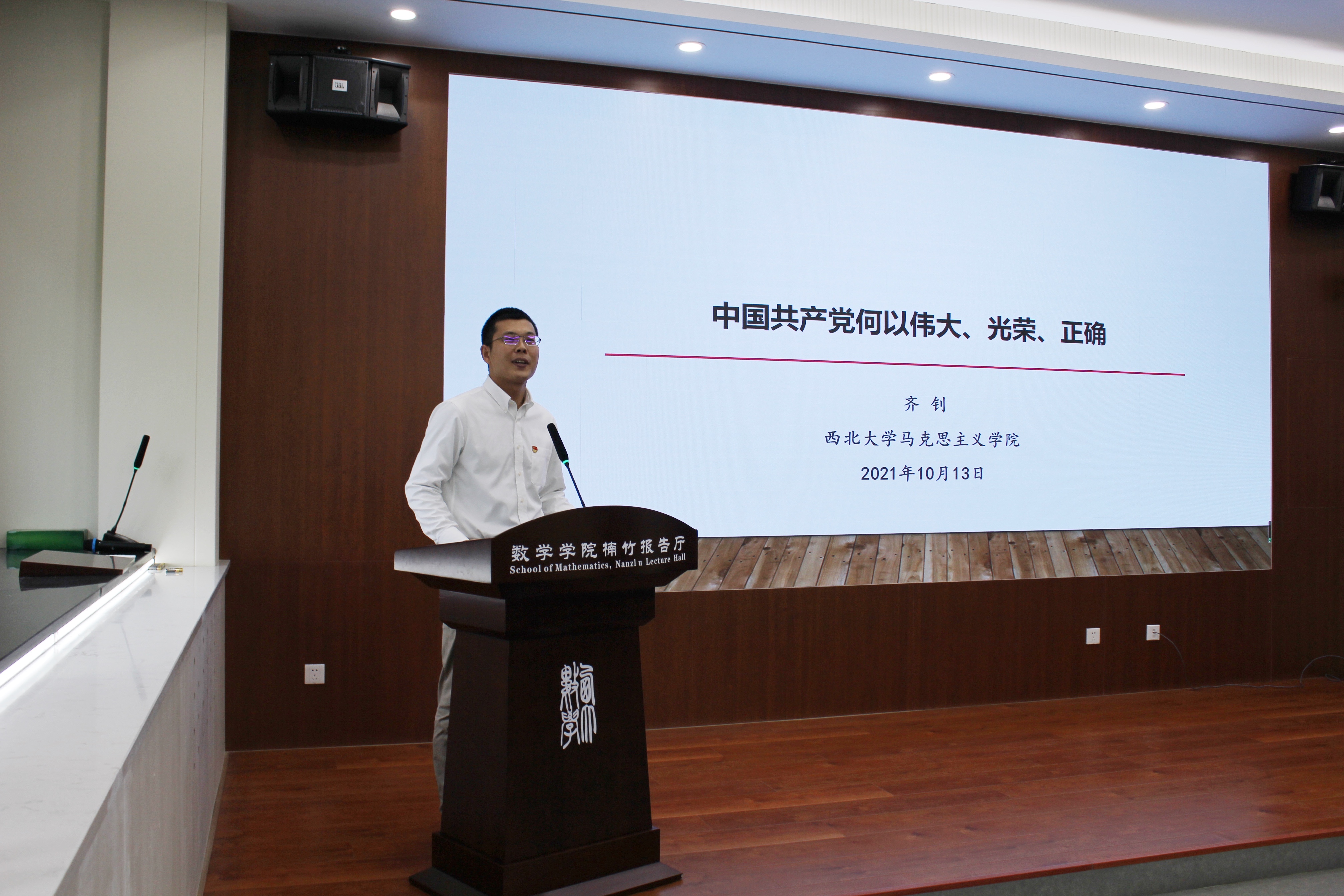 此次报告,齐钊老师从大历史观的审视、一个主题的凸显和历史主动的把握这三个方面来进行阐述。他讲到,要从中华文明发展史和一百八十余年中国近代史的特殊遭遇这两个角度进行审视,中国共产党拯救民族于危难之间,带领中华民族从蒙难走向复兴。要把握好实现中华民族伟大复兴是不懈奋斗史、不怕牺牲史、理论探索史、为民造福史和自身建设史的主流本质。要从“九个必须”理解好历史的主动把握。