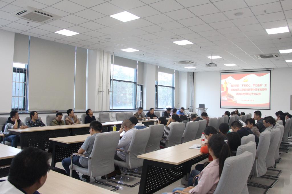 为了进一步贯彻中央思想建党、理论强党的方针政策,着力深化理论武装,全面提升公司党的建设质量,推动公司“不忘初心、牢记使命”主题教育理论学习往深里走、往心里走、往实里走,9月25日下午,数学公司党委在公司会议室举办“不忘初心、牢记使命”主题教育第三期读书班暨中青年教师师德师风教育培训大会,公司党政班子成员、党委委员、各支部书记以及40岁以下中青年教师参加了会议。党委书记李长宏主持大会。