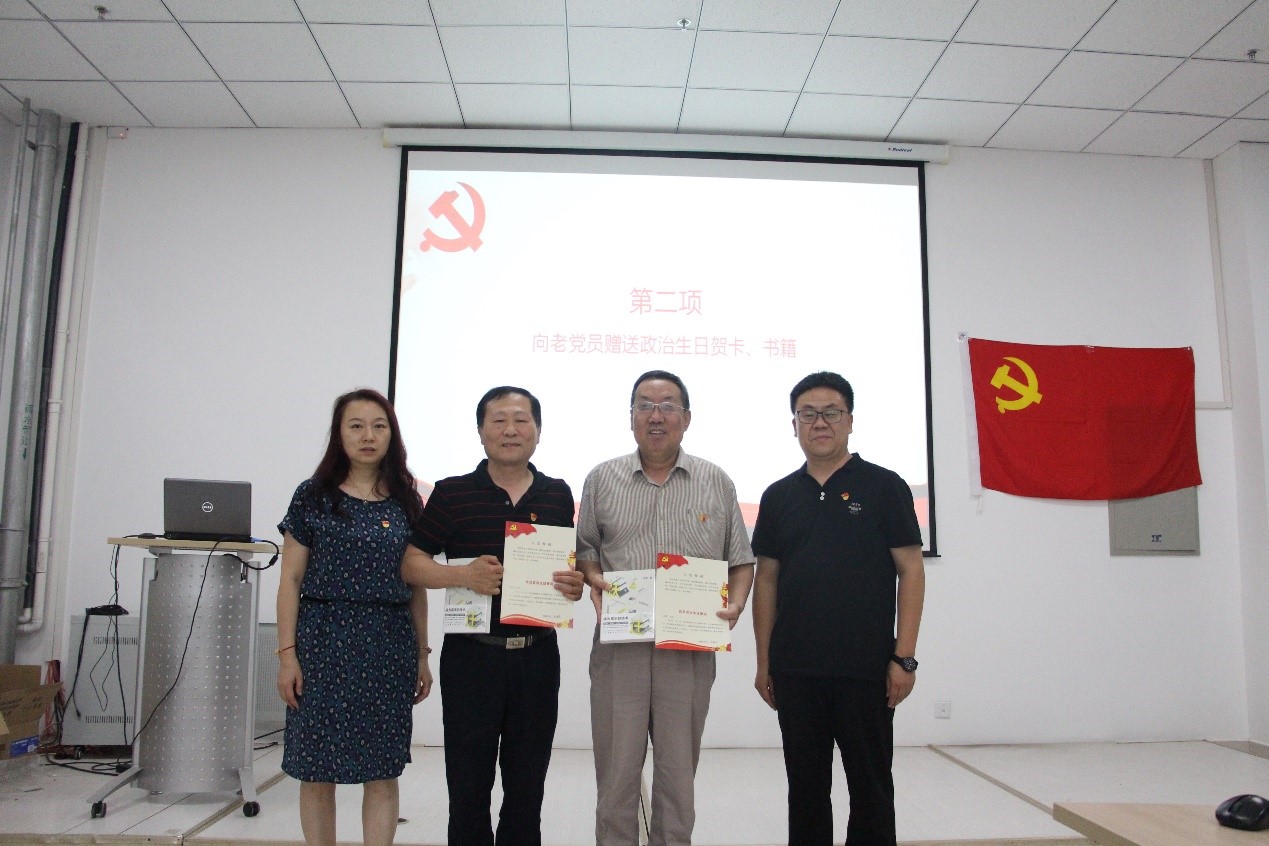 7月3日下午,数学公司党委开展党员“政治生日”主题教育活动,王连堂和辛小龙等两位老教授、老党员,公司党委委员及各党支部书记参加了活动,活动由公司党委书记李长宏同志主持。