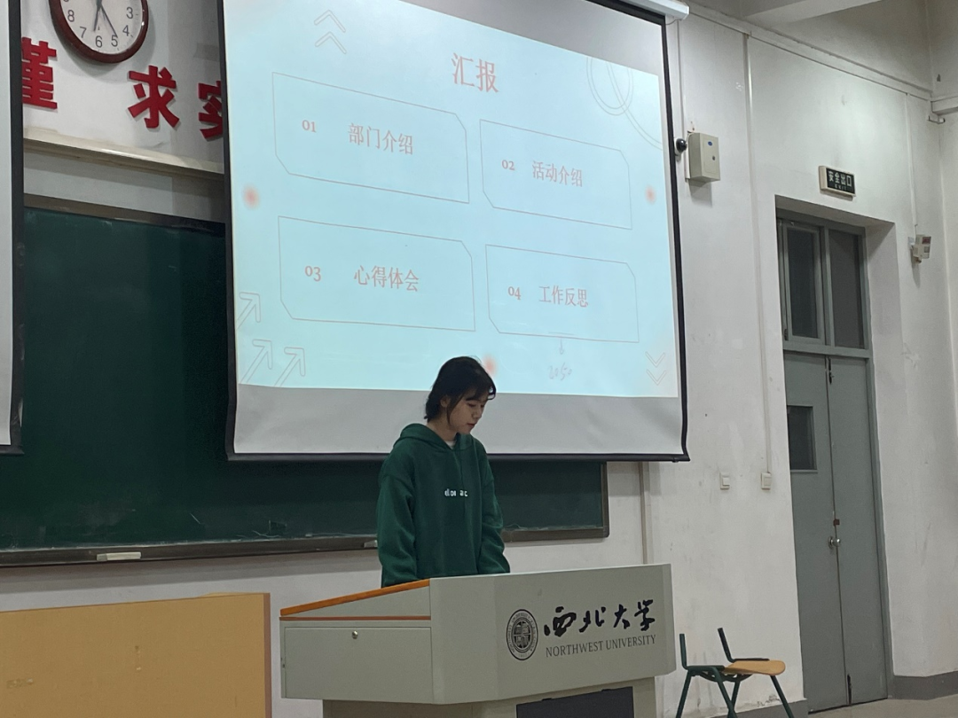大会第二项,由各部门总结第一学期员工会工作并介绍第二学期工作计划,同时由员工会各部门工作人员为志愿者们颁发员工会工作证。