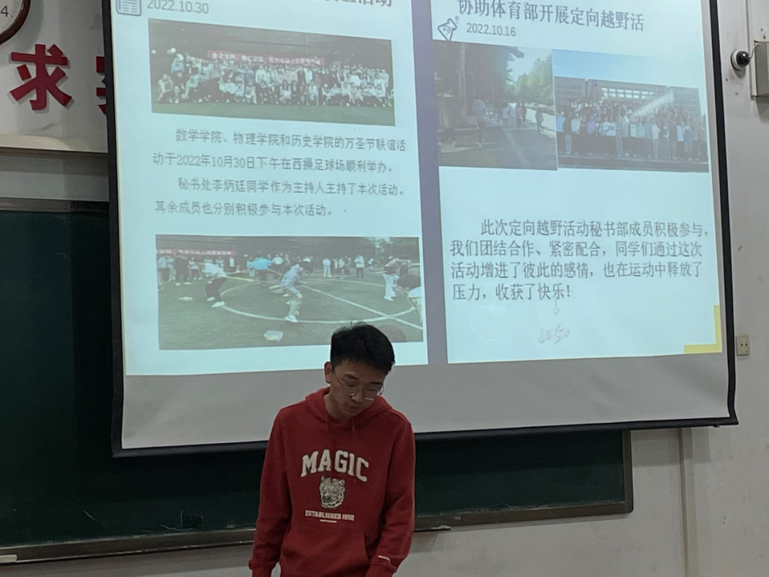在上一学期的工作中,秘书处成功举办了suncitygroup太阳集团主持人大赛、完成每日晚自习查勤、协助体育部举办定向越野活动、 并协助公关部圆满举办三院联谊等工作。新的一学期里,秘书处也将继续增强部门凝聚力、总结完善不足、完成常规工作的同时加强部门交流,努力走向更好的未来!