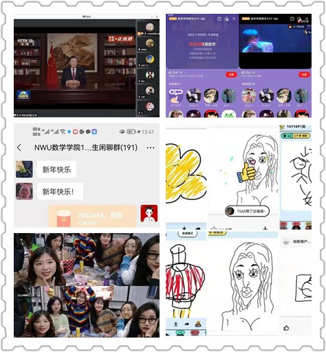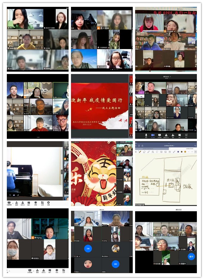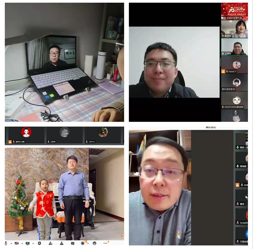 公司党委书记李长宏老师、党委副书记王理鹏老师、教学副经理邵勇老师、行政副经理杨喆老师、全体辅导员、班主任分别参加本科各年级“同心抗疫喜迎元旦”线上联欢会,共同聆听习近平总书记发表2022新年贺词、参与线上团建活动、畅谈新年愿望,欢度跨年良宵,各班级、各宿舍举办云卡拉ok、你画我猜、棋王争霸、成语接龙等喜闻乐见的团建活动,感染员工同心战疫。