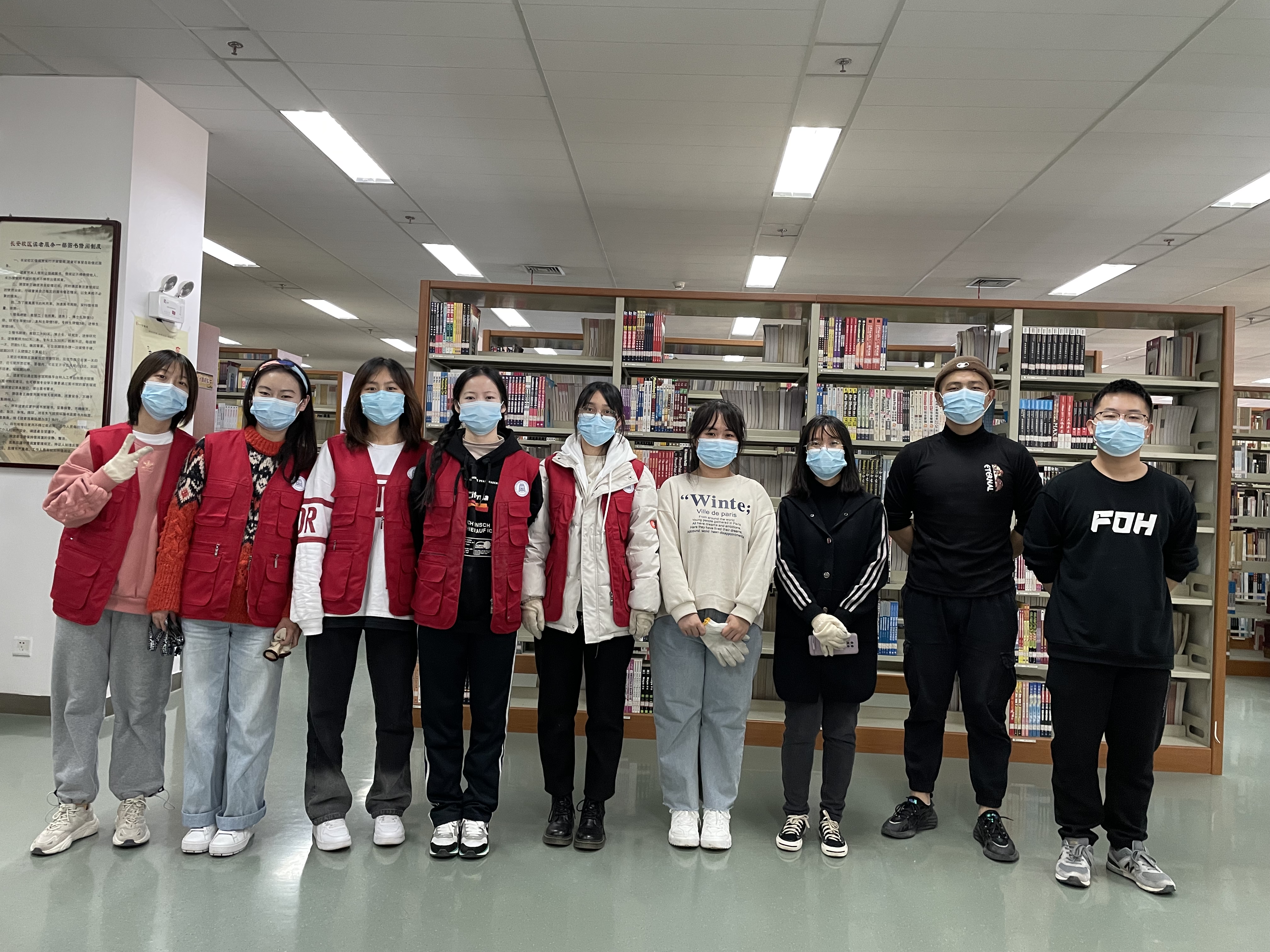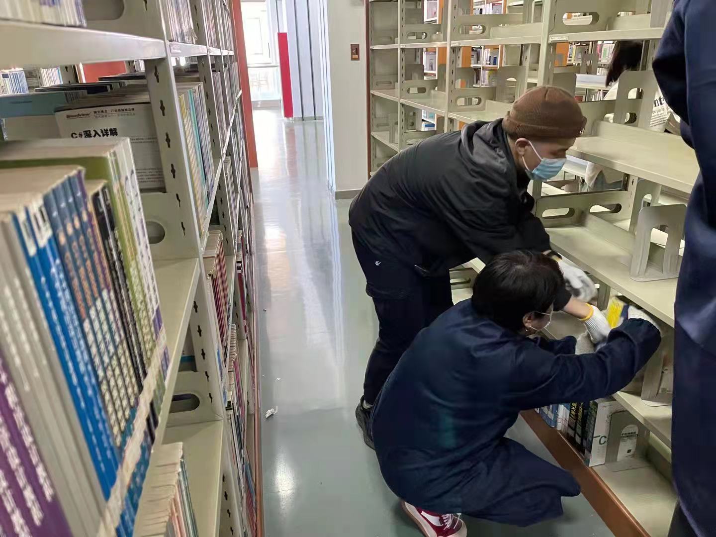 为了让读者尽早回归正常借阅,志愿者们通过分组,在图书馆老师的指导下,进行图书整理。志愿者们不怕苦,不怕累,进行了为期一周的图书分类、倒架等工作。