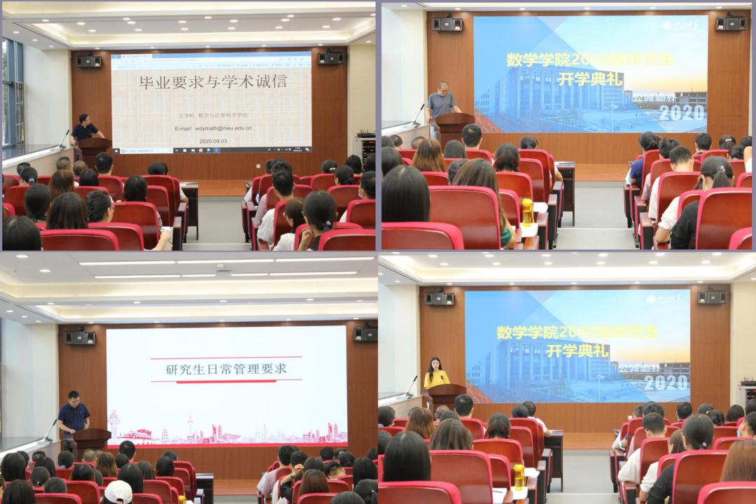 研究生学位秘书王冬岭副教授系统介绍了研究生奖学金评定、毕业基本要求、学术诚信等相关学术规章制度。辅导员李建璋老师主要从日常管理、校纪校规 、疫情防控、培养良好道德品质、遵纪守法等多个方面,给大家上了“开学第一课”。历智明副教授从班主任角度对研究生提出了建议:要心地善良、敬畏自然、 追求真理、心胸开阔、志向高远,尽快适应老员工到研究生的角色转换。2019级统计学硕士,suncitygroup太阳集团第21届研究生支教团的成员张欣悦,作为新生代表发言。