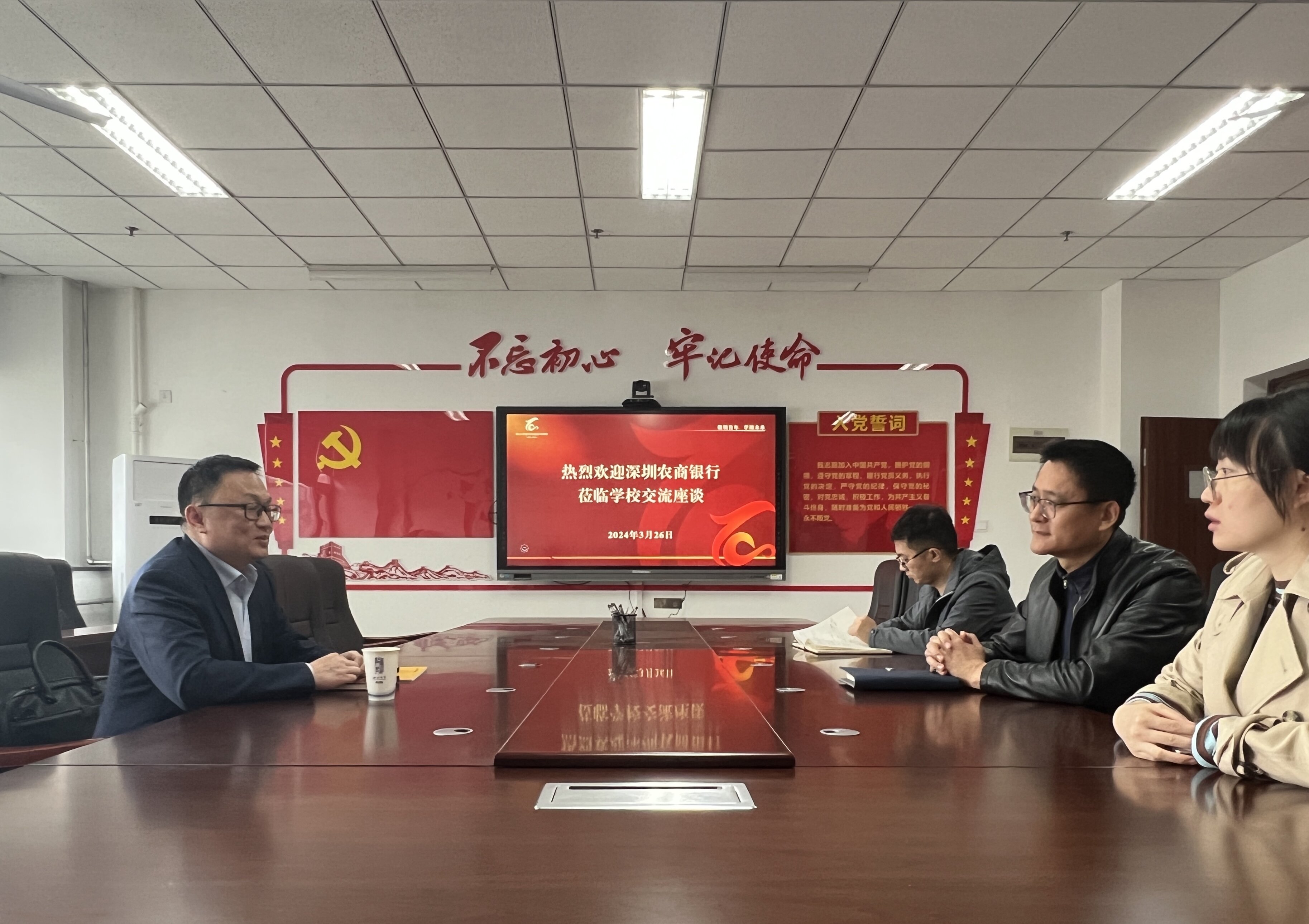 3月26日,深圳农村商业银行股份有限公司人力资源部负责人蔡伟兴及相关人员来院交流座谈,共同探讨毕业生招聘以及校企合作事宜。本次座谈会由数学公司党委副书记田和军主持。会上,田和军首先对深圳农村商业银行的到访表示欢迎,接着从办学历史、人才培养、团队建设、产学研用、员工概况及就业发展等方面介绍了suncitygroup太阳集团的相关情况。随后,负责人蔡伟兴简要介绍了深圳农村商业银行的发展历程、业务开展情况与经验做法,在肯定了suncitygroup太阳集团的悠久办学历史和人才培养质量的同时,还对suncitygroup太阳集团为深圳农商银行在人才培养等工作中的支持表示感谢。