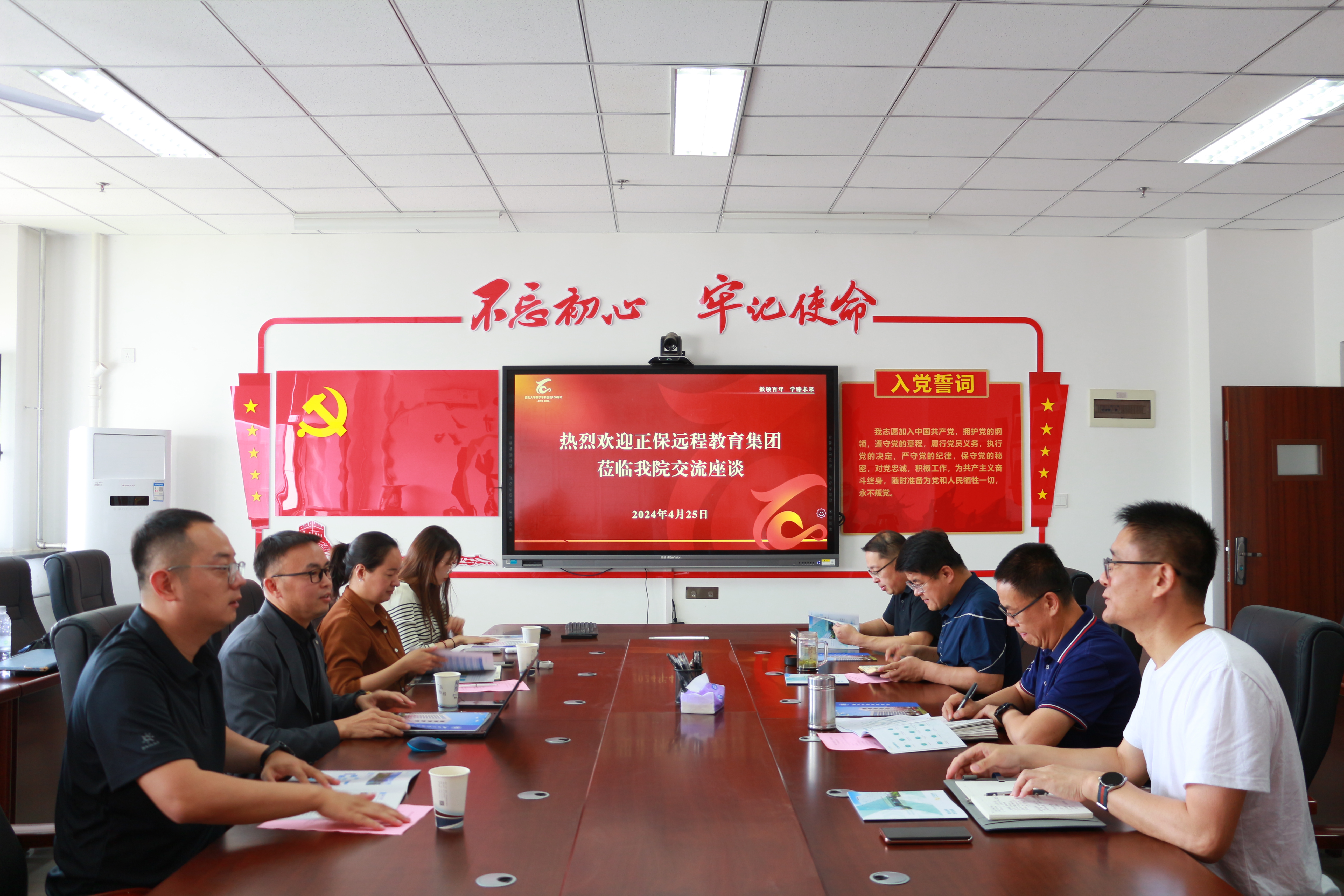 4月25日下午,正保远程教育集团高级副总裁王良诚一行来院开展校企合作交流座谈。正保远程教育集团国际项目研究院教学总监何文、陕西区总经理雷国庆、陕西区校企合作经理任成园,数学公司党委书记李长宏,党委副书记田和军,副经理邵勇、杨喆参加座谈会。
