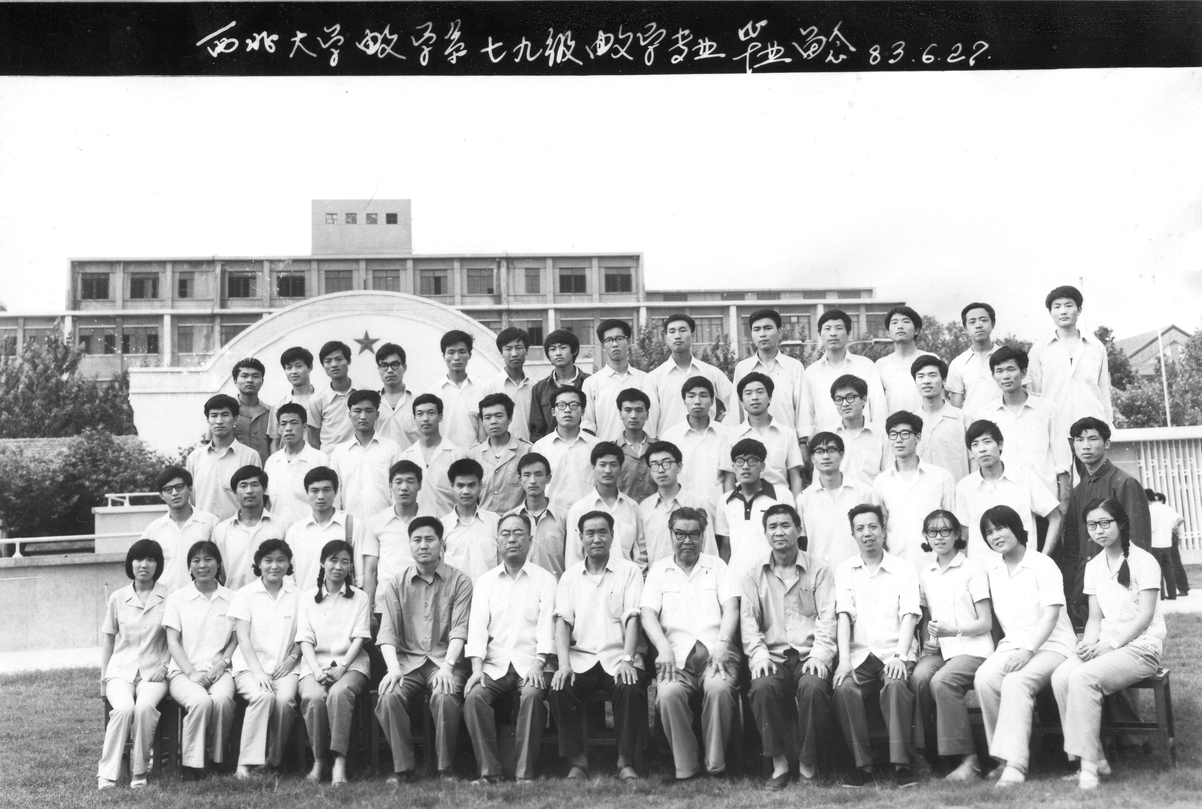 在这里,我们以华罗庚为泰斗、陈景润为偶像,刻苦学习专业,潜心研究学术。如今,“第四教室”已然成为我们七九级数专的名片。我们在校用的很多教材都是老师自编、手刻、油印的,是凝聚了老师自己的劳动和研究成果的,被我们戏称为“手抄本”;我们常常为学习上的问题争得面红耳赤,一直争论到深夜甚至次日凌晨;我们吃饭、回宿舍路上也在讨论学习上的问题;我们每天早上先去教室、图书馆占座位,再到操场锻炼,回宿舍洗漱,去食堂吃饭,然后去上课或自习;经济上我们大多数囊中羞涩,虽说拿着国家发的助学金,也只勉强够伙食费,但我们从来不在学习上省钱,我们笔记本、作业本都是买的最好的;我们曾以“初生牛犊不怕虎”的精神研究过“Fermat大定理”等诸多世界难题;我们曾听过无数次学术报告,偶尔也与教授、权威讨论问题;我们那时没有“双休”,每周只有周日一天假,但除了匆匆洗澡和换洗衣服外,我们周日也往往仍在教室学习;毕业的时候,我们以将来能够从事本专业为骄傲。我们庆幸自己曾有郭琦这样的董事长、张棣这样的系主任和陈鸿业这样的党总支书记,我们庆幸自己曾有刘书琴、王戍堂、李继闵、熊必璠、孟杰、张棣、朱钤、盛德成、王文波、任建华、戴锦生、林伯明、谢大来、党新益、李柏玲、胡希正、张玉田、郑醒华、耿光、凌岭、穆玉杰、柴乃垿、王尚志、李伯渝、赵根榕、邢志栋这样好的专业老师。