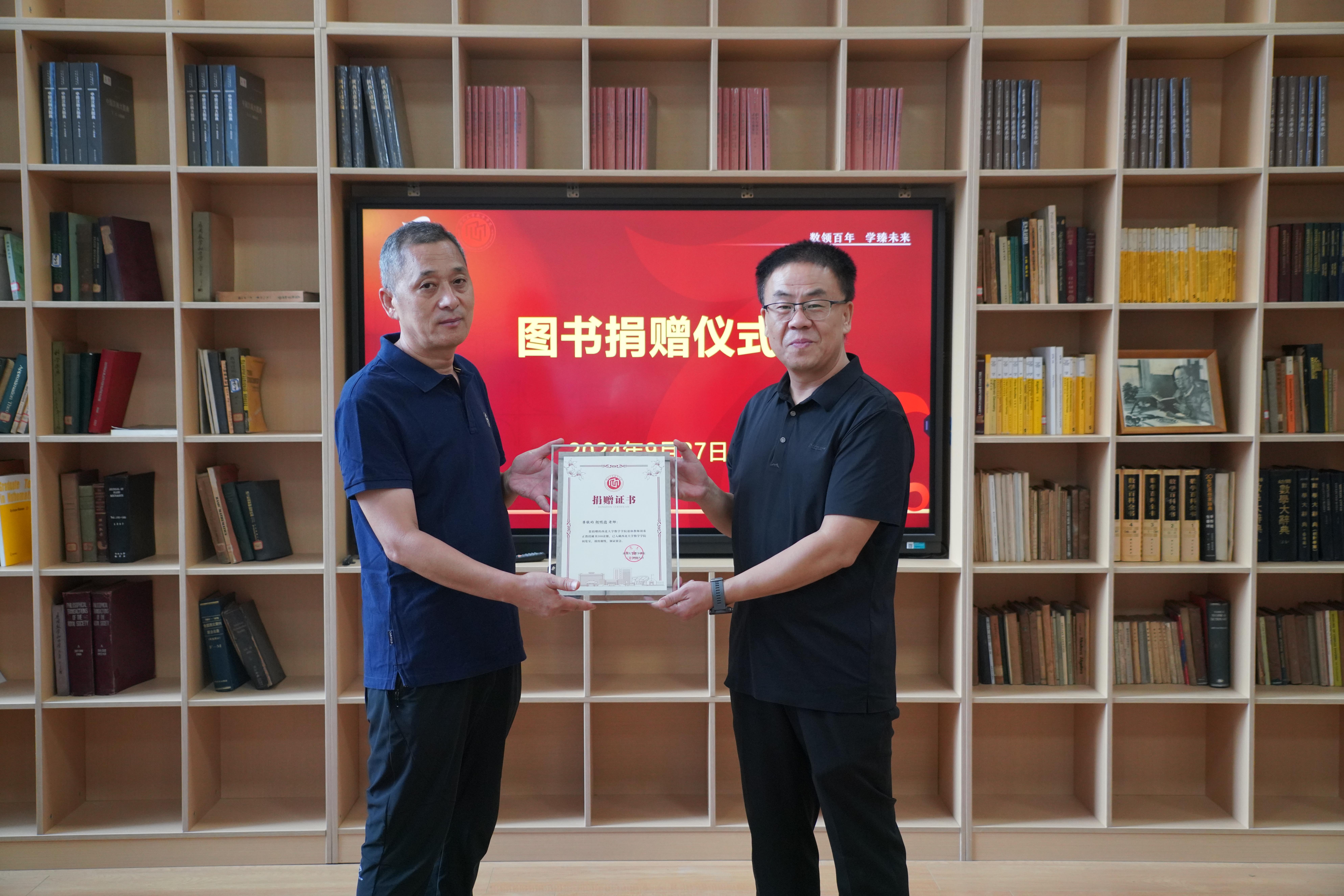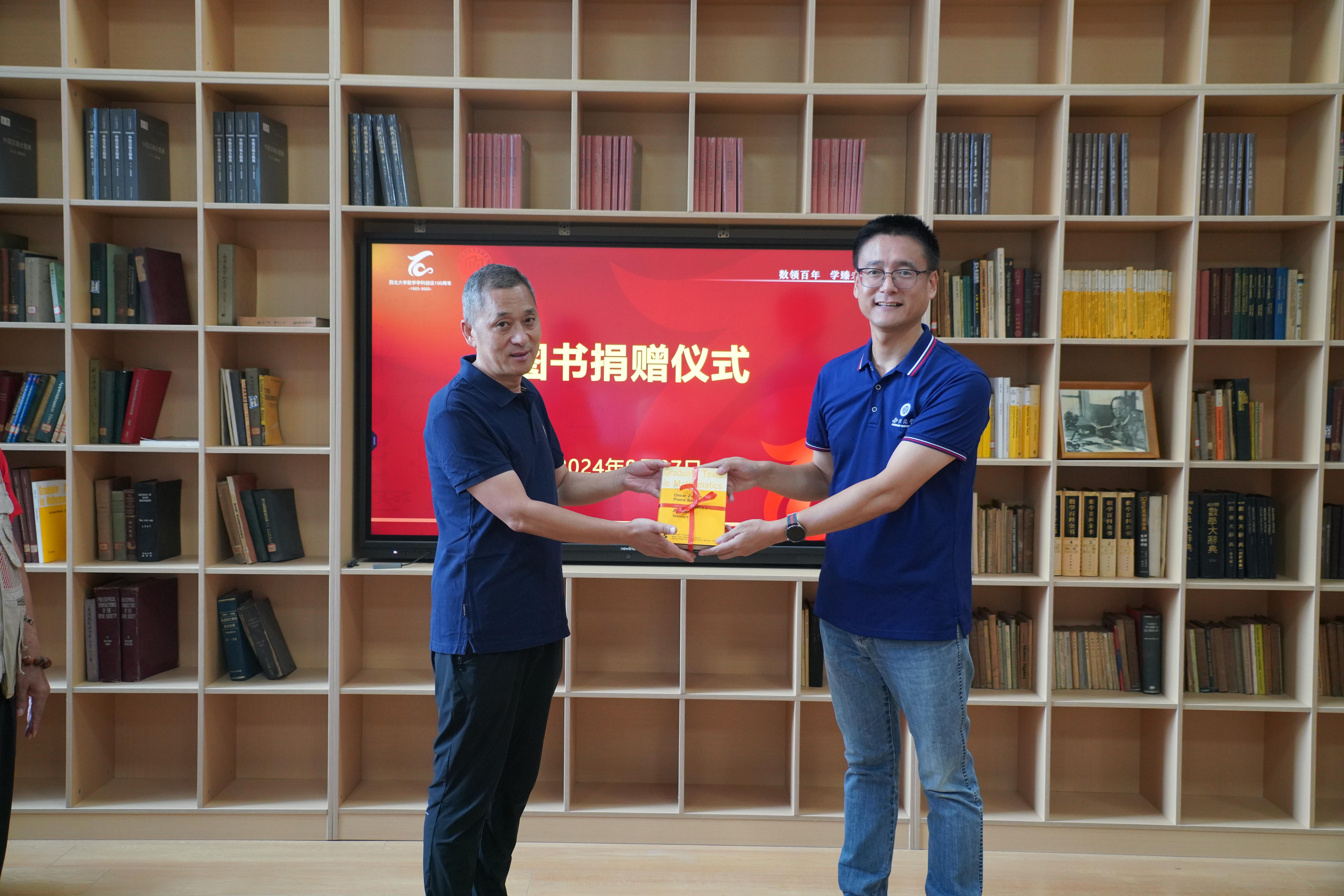仪式上,胡希正教授儿子胡明德代表其父向公司捐赠了胡希正珍贵藏书300余册。党委副书记田和军代表suncitygroup太阳集团接收捐赠,党委书记李长宏为胡明德颁发捐赠证书,并代表公司向胡希正教授及全家对公司工作的大力支持表示感谢。此次捐赠书籍包含代数、微分几何、美国数学会杂志、经典数学专注及复印本、手稿、收藏期刊、民国及建国初期著作,其中不乏珍贵书籍,为公司阅览室丰富了阅读和查询资料,尤其是数学系资料室数学文献资料讲义,对数学系资料室早期建设有很珍贵的研究价值。